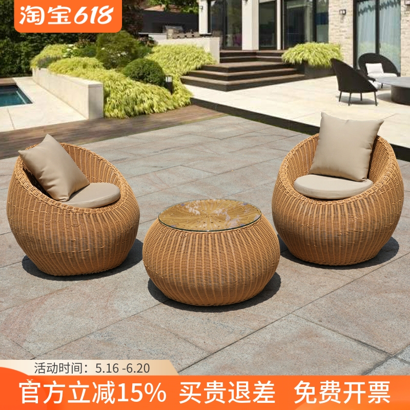 创意家具北欧藤椅三件套户外花园阳台室外露天沙发休闲酒店藤沙发