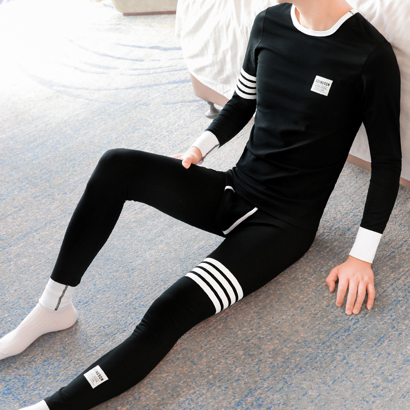 青年薄款男士保暖内衣秋衣秋裤套装男线衣线裤加绒加厚圆领棉毛衫