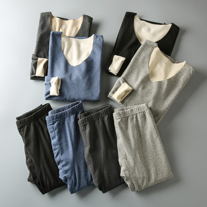 德绒男士保暖内衣套装加厚V领无痕自发热秋冬季AB面打底秋衣秋裤