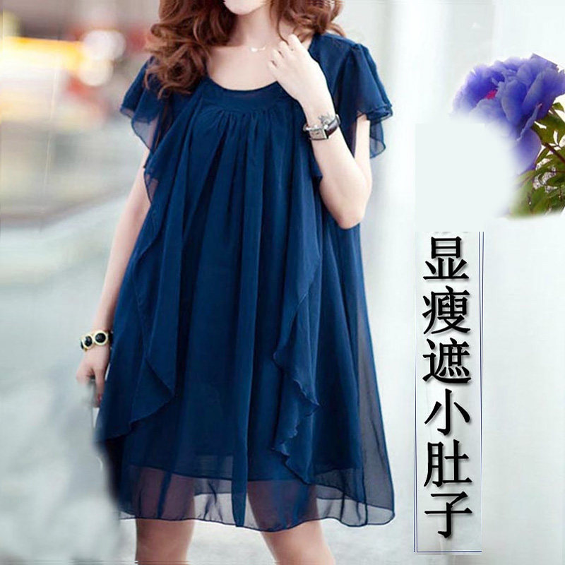 连衣裙200斤大号修半袖身加肥加大码女装宽松夏季胖mm短袖雪纺裙