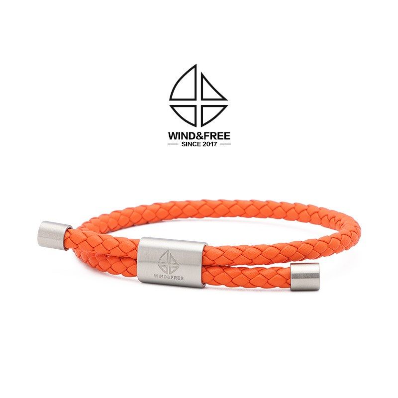 简约橘色牛皮手链男女时尚百搭真皮编织皮绳手环可穿金珠一生之环