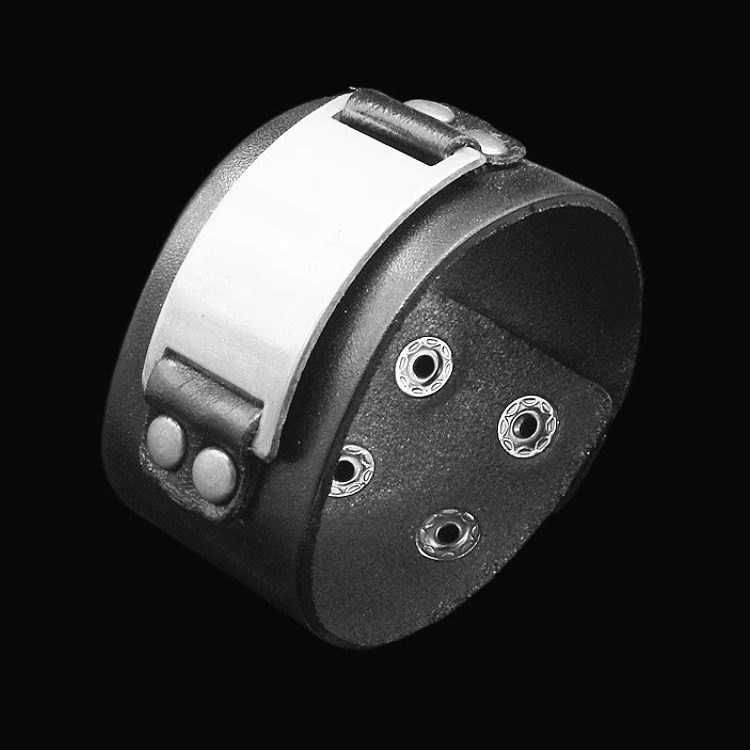 新创意个性银灰色合金标牌漆黑柔软牛皮手链男女朋克饰品手镯手环