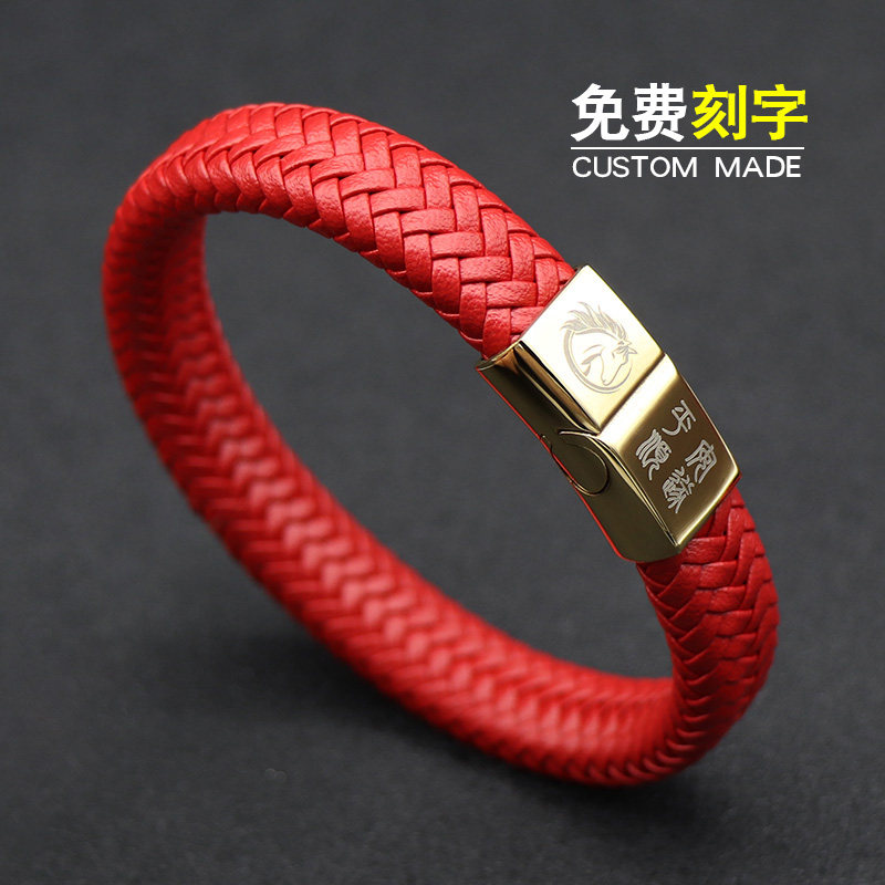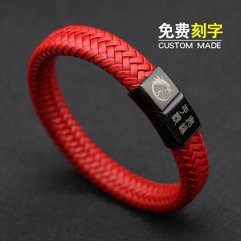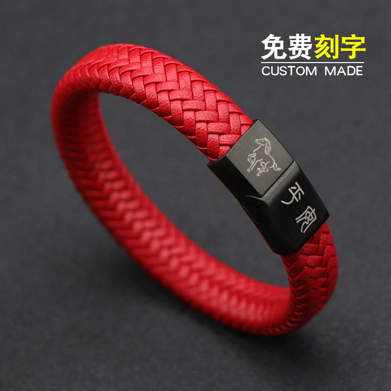 复古中国风红色本命年十二生肖马皮手链男女个性饰品手环定制刻字