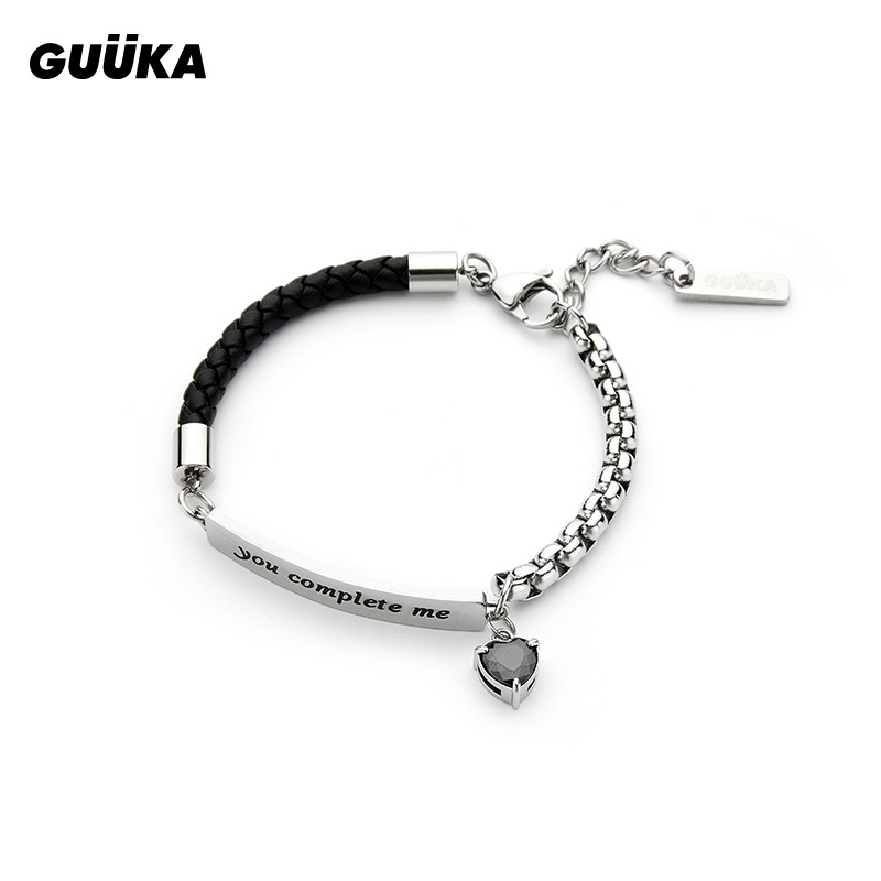 GUUKA潮牌钛钢真皮手链男 情侣浪漫表白手绳爱心锆石盒子链手饰