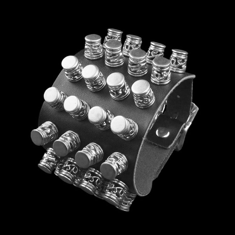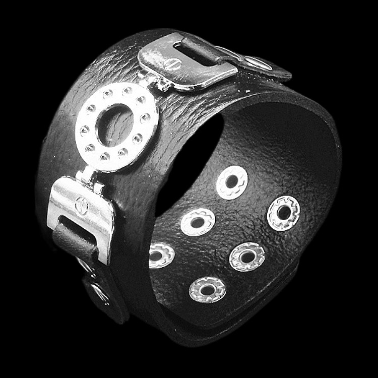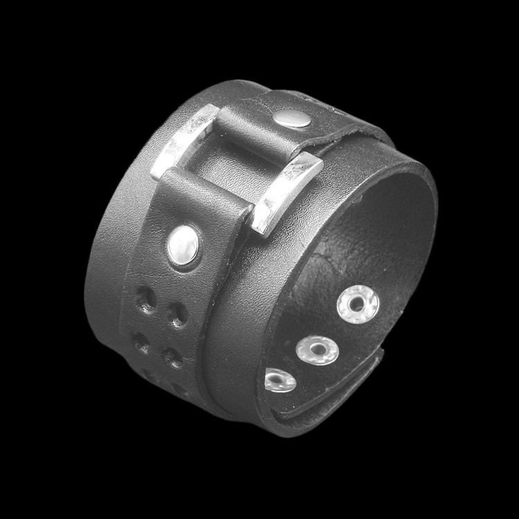 夸张个性方扣圆孔黑色双层牛皮手链男女朋克搭配饰品手镯表演手环