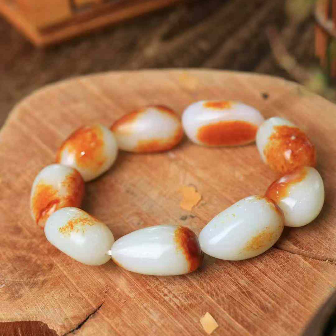 天然正品新疆和田玉手串原石白玉红泌皮手链男款玉石手串带送证书