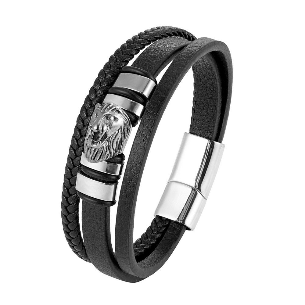 现货批发欧美不锈钢皮手链男士多层皮革手链 不锈钢首饰编织手镯