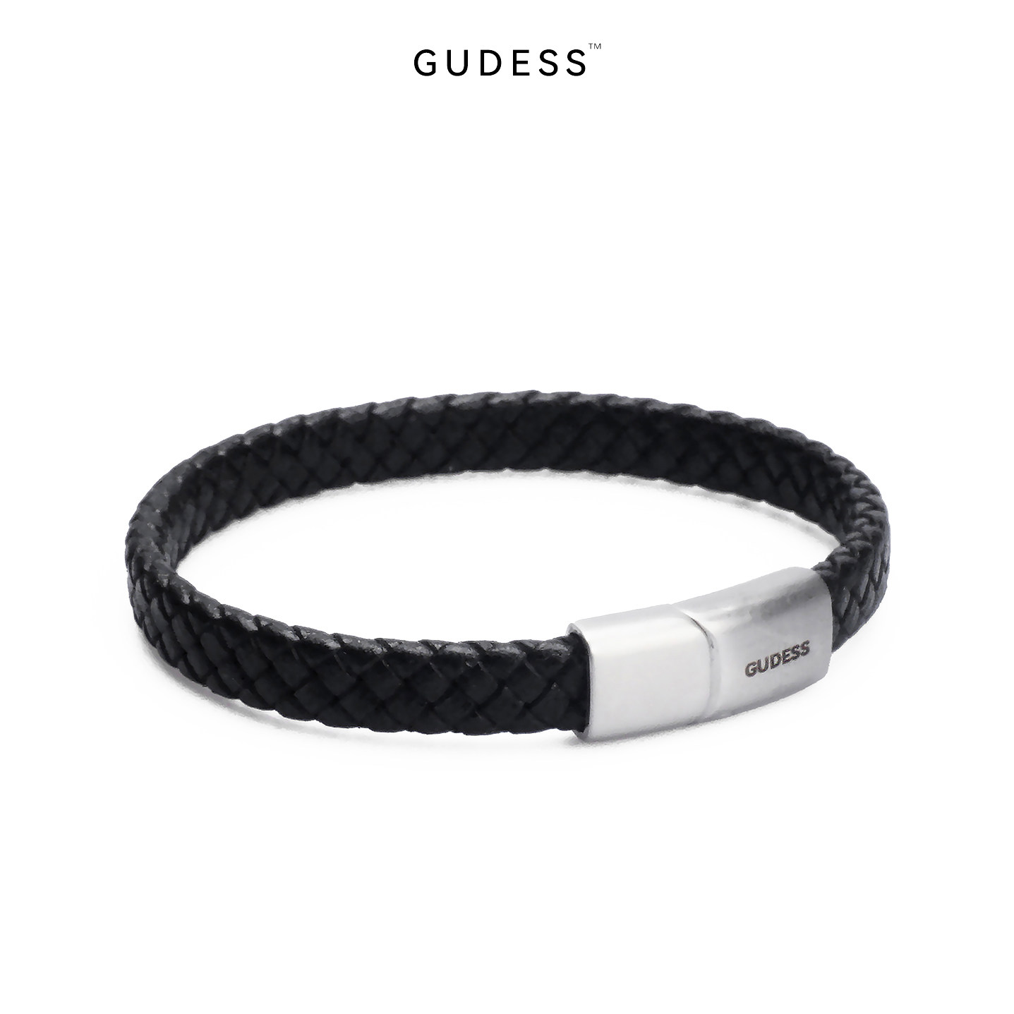 GUDESS扁状编织皮手链男士卡扣手环钛钢扣头手绳送礼礼品送男友