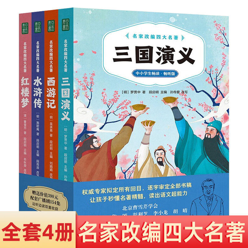 名家改编四大名著 中小学生畅读畅听版三国演义+西游记+水浒传+红楼梦含小册子 中小学生名著深度解析版 考试配套名家推荐正版