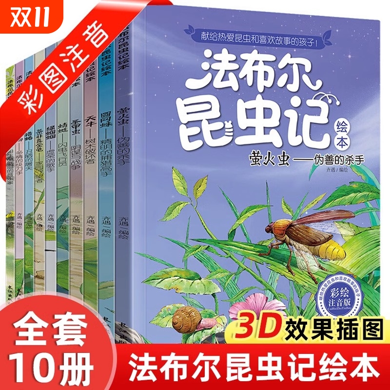 法布尔昆虫记注音美绘版全套10册 一二三年级正版完整版四五小学生名著阅读科普课外书带拼音伴读原著绘本故事书儿童百科全书籍虫