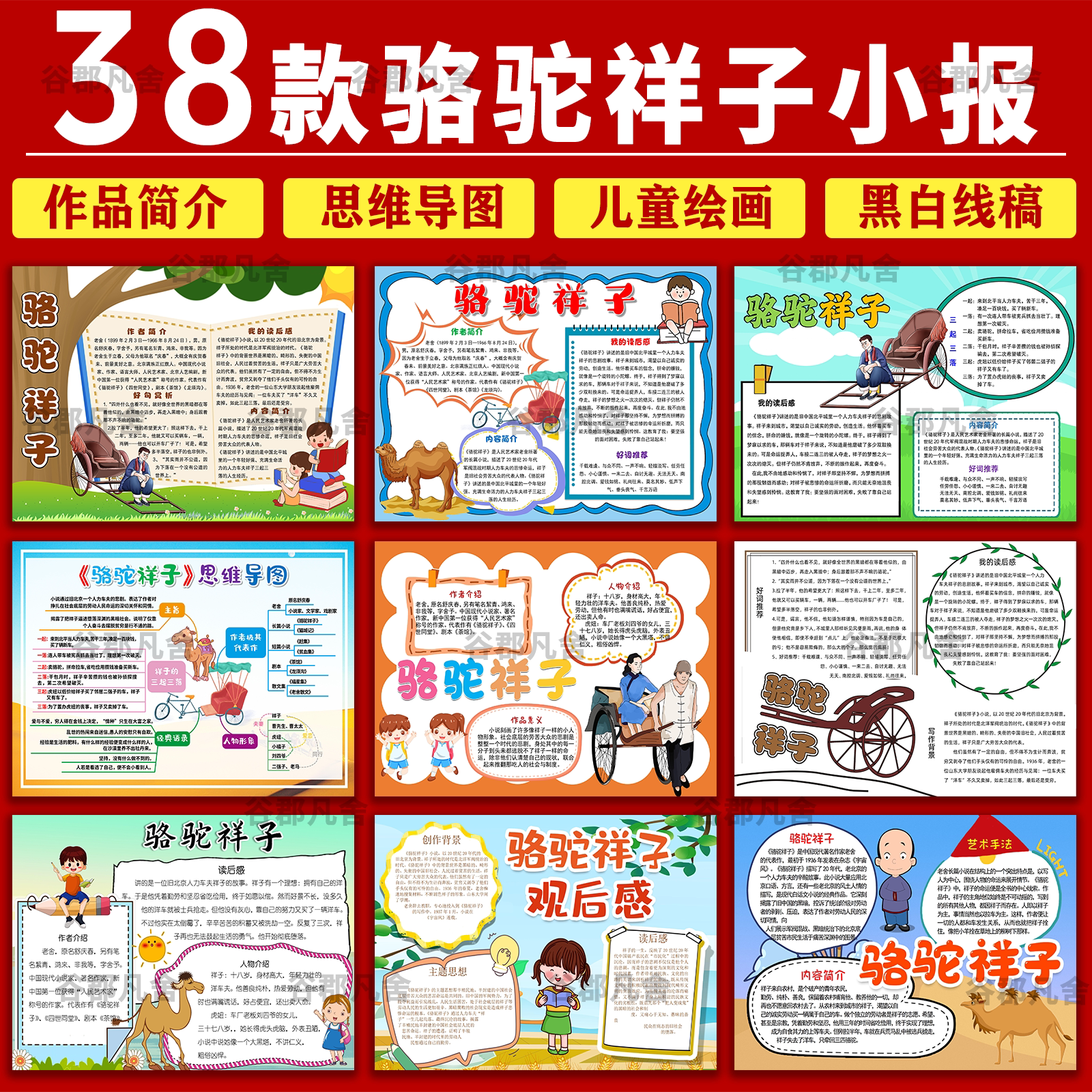 中小学生名著阅读骆驼祥子手抄报电子版小报模板a3a4半成品素材8k