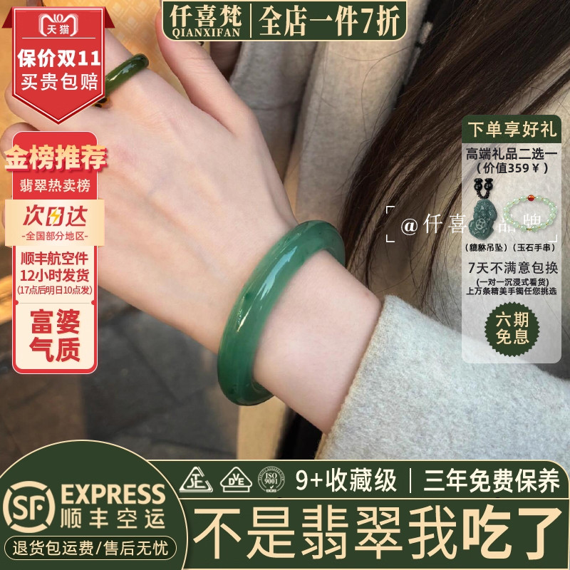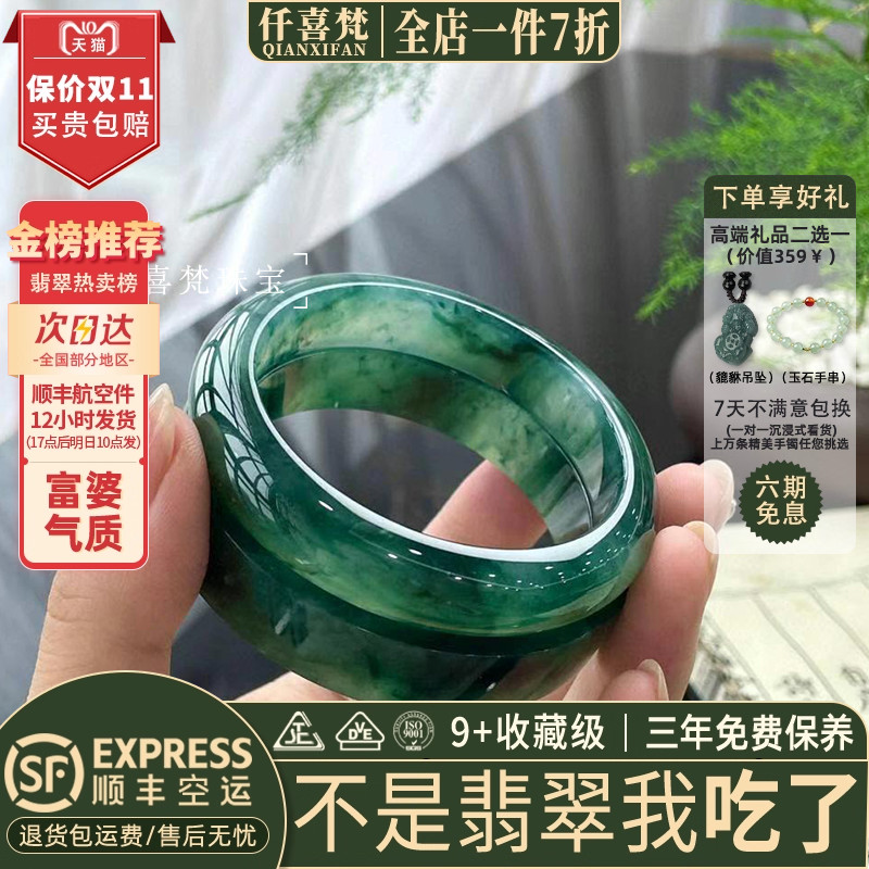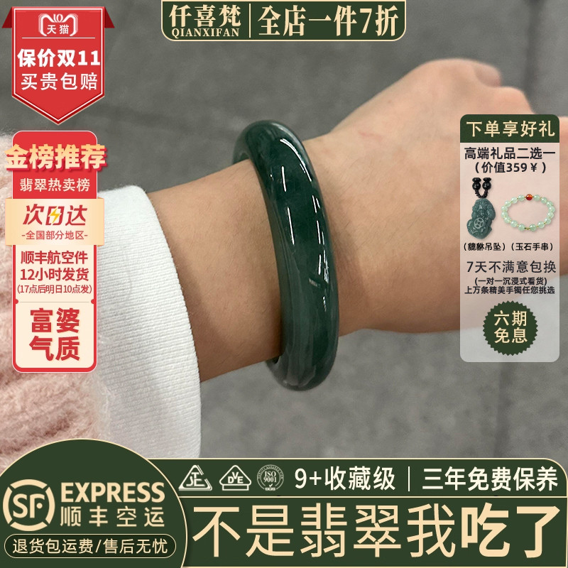 仟喜梵“星欲坠”高端缅甸翡翠玉手镯子女款冰种墨绿油青正品处理