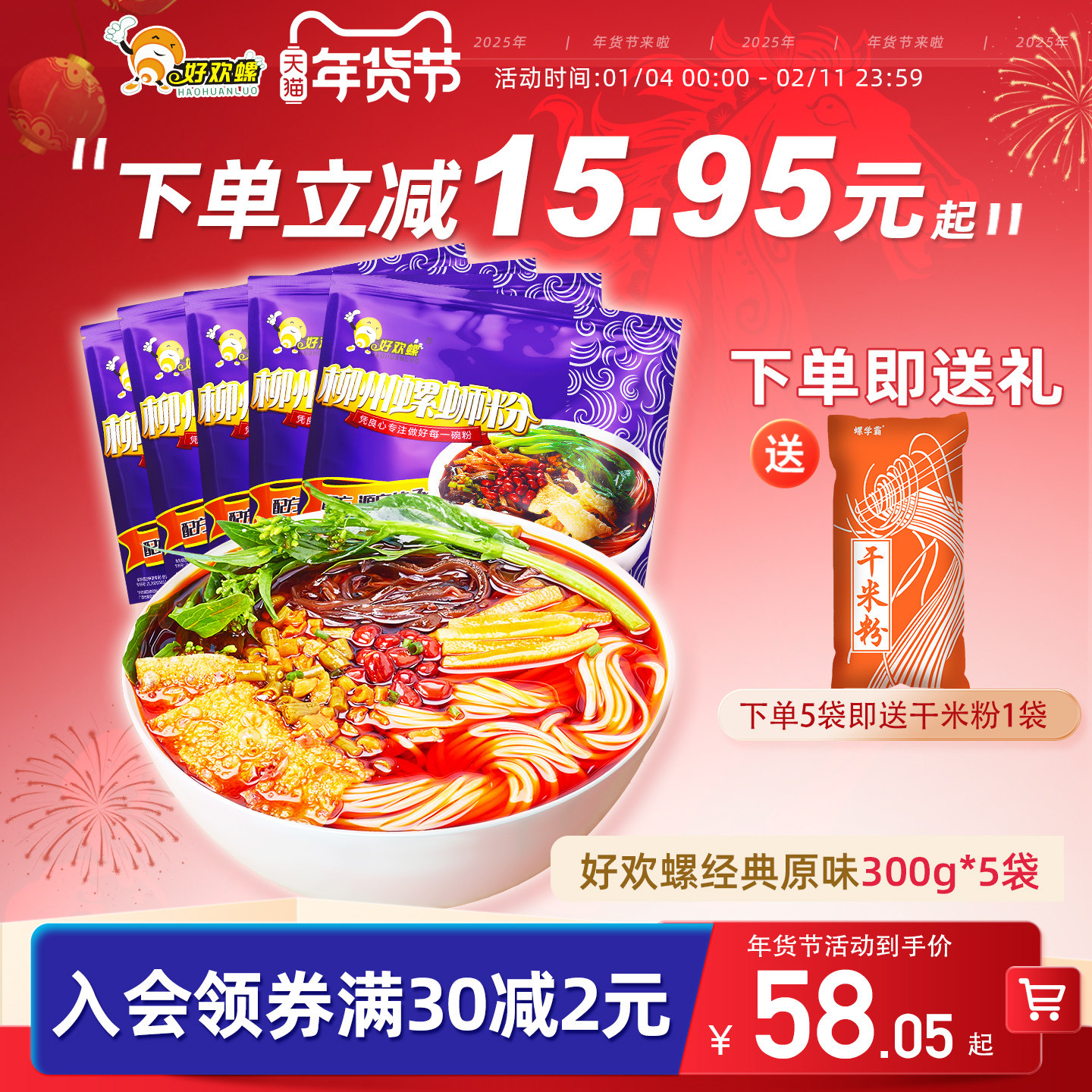 好欢螺螺蛳粉官网旗舰原味300克*5袋装正宗柳州螺狮粉特产包邮