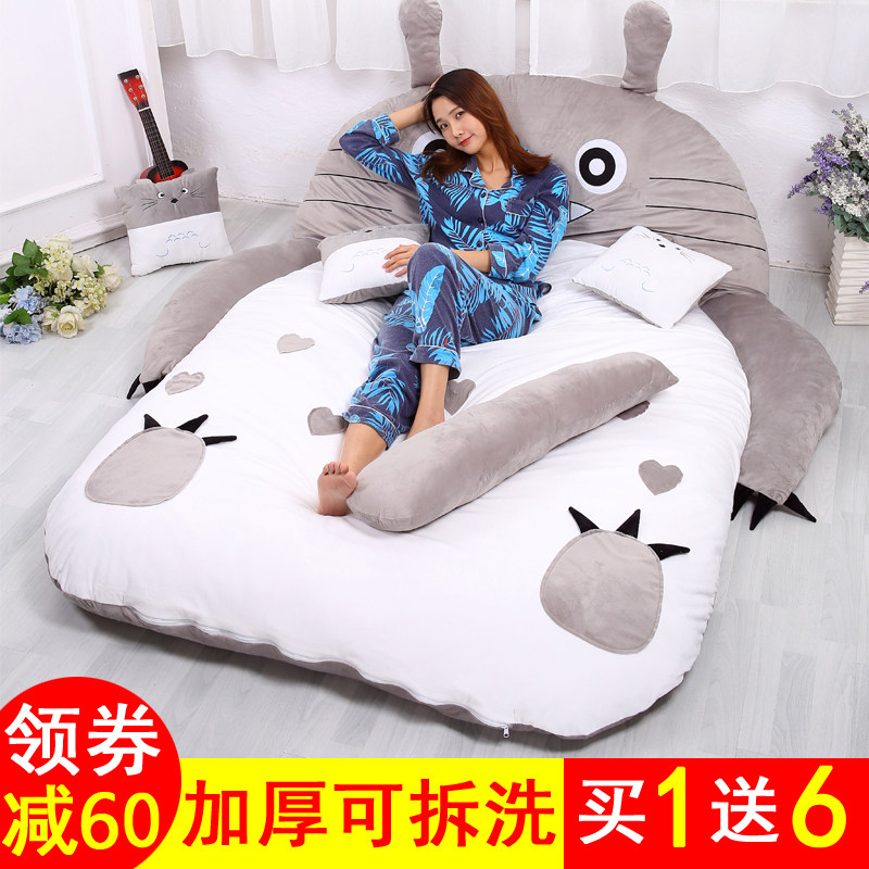 加厚可拆洗龙猫床懒人沙发床卡通可爱榻榻米可折叠双人卧室地铺睡
