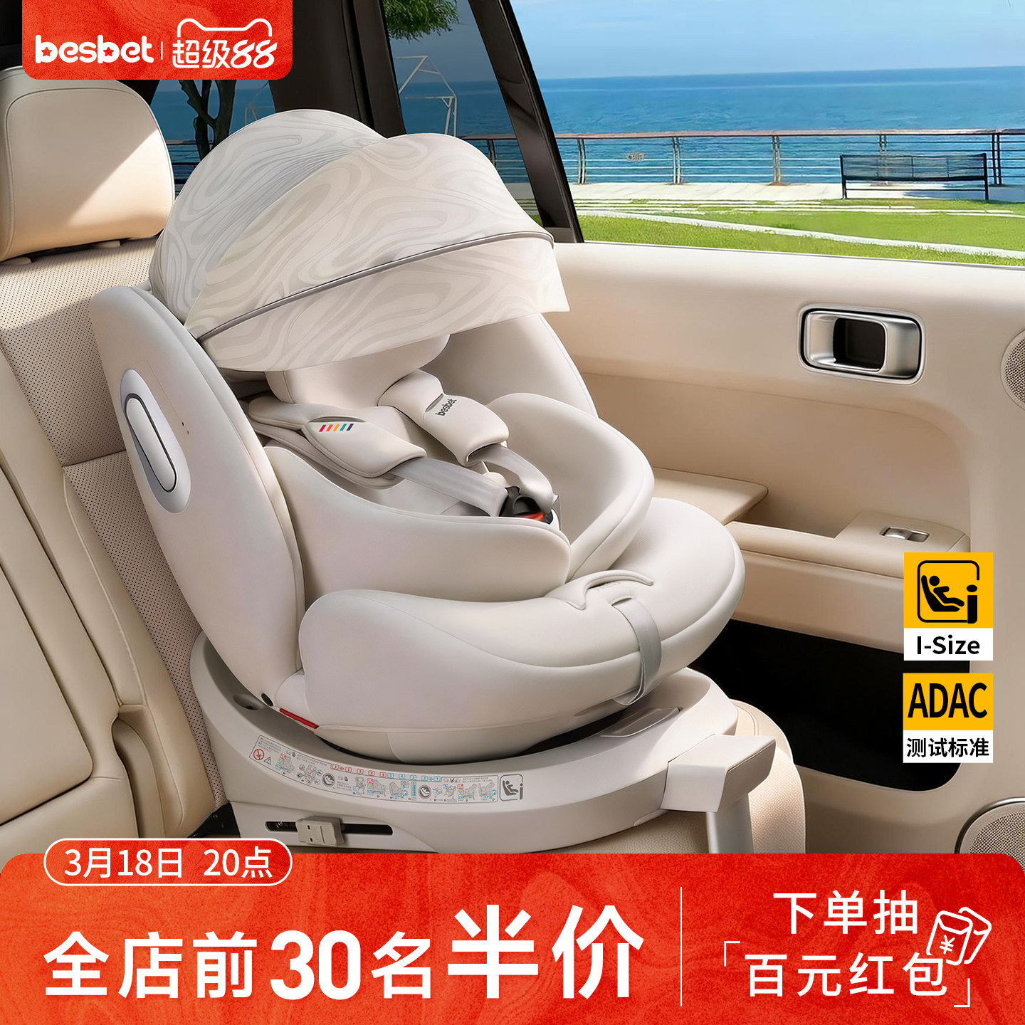 besbet儿童安全座椅汽车用0-12岁婴儿宝宝车载坐椅旋转可坐可躺