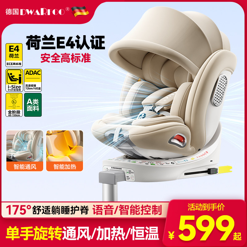 德国DWARFOO儿童安全座椅汽车用婴儿宝宝车载0到12岁便携式坐椅躺