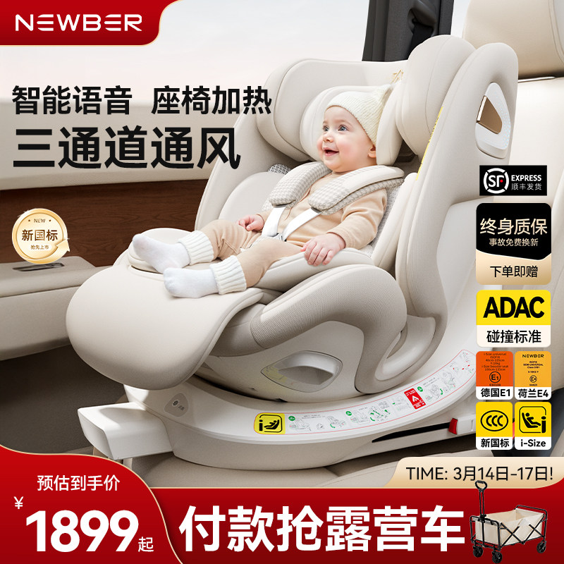 newber纽贝尔儿童安全座椅0-12岁宝宝新生婴儿车载通风加热新国标