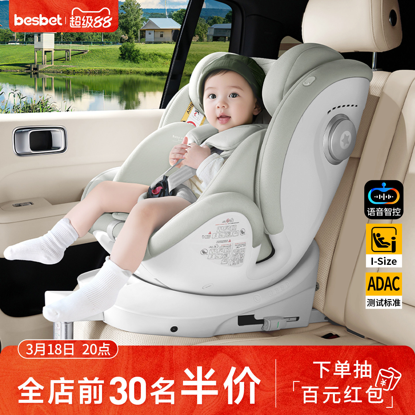 besbet追梦号儿童安全座椅新生婴儿0到12岁宝宝车载通风加热旋转
