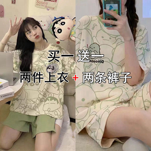 买一送一睡衣女夏新款短袖短裤甜美可爱卡通学生可外穿家居服套装