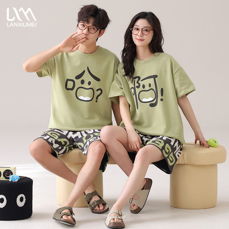 情侣睡衣夏季纯棉短袖甜美可爱女士卡通男士可外穿薄款家居服套装