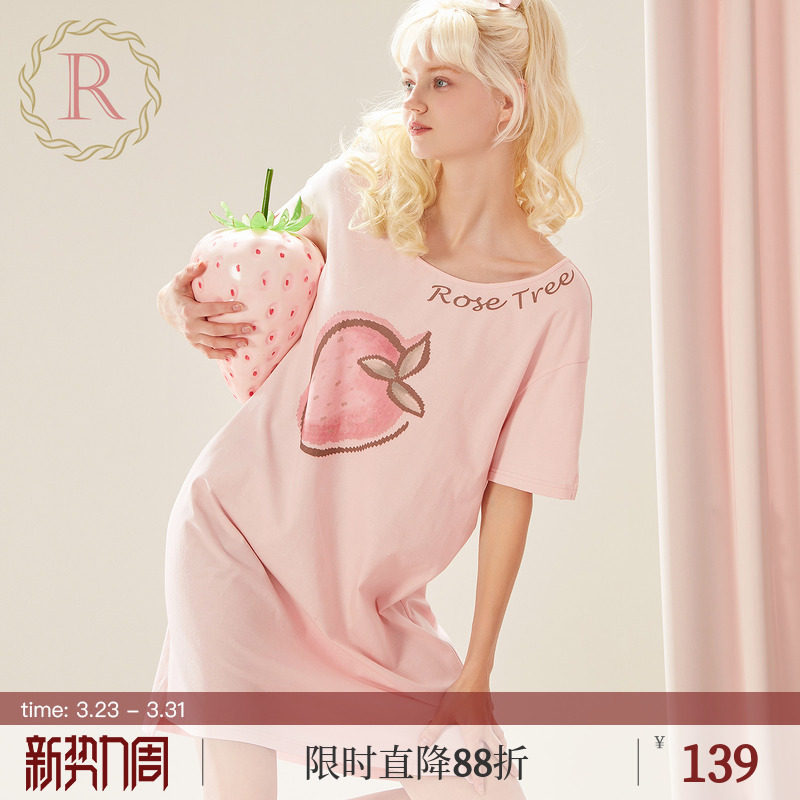 RoseTree可爱睡裙女款夏季纯棉短袖甜美日系少女睡衣裙2025年新款