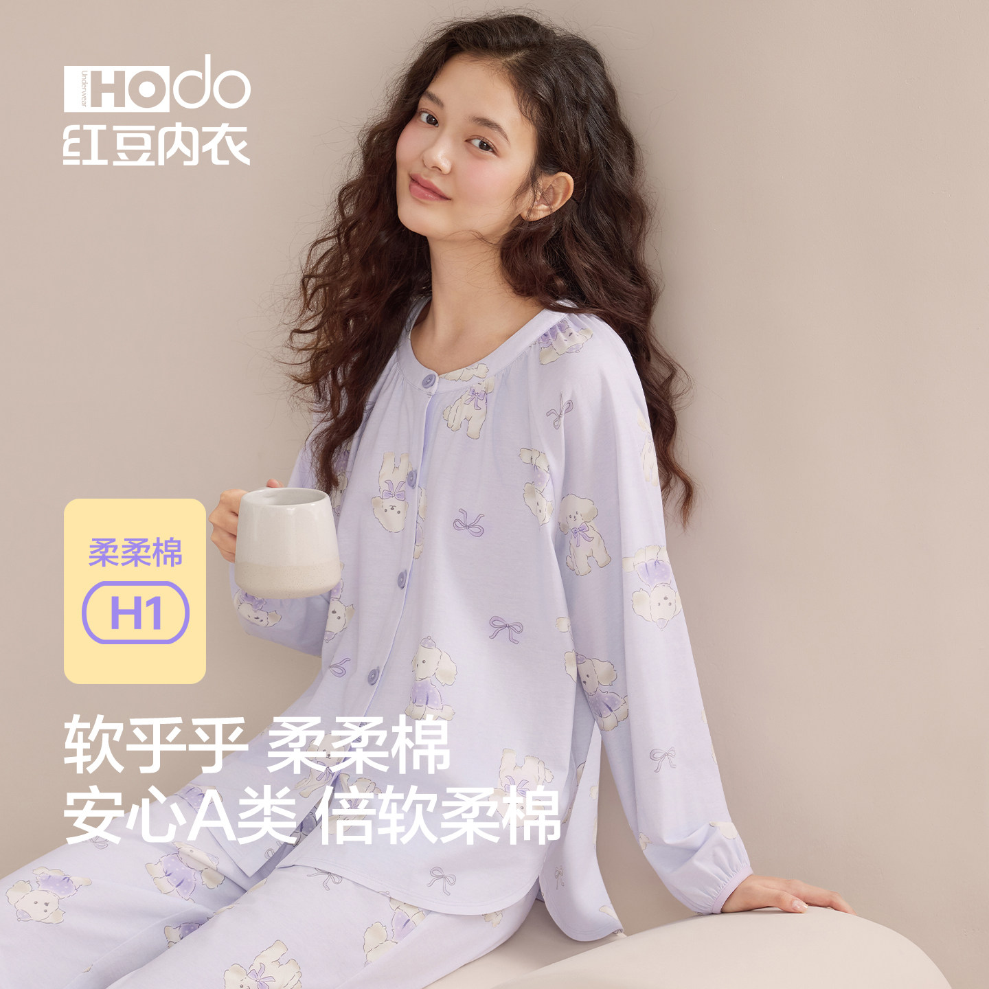 红豆睡衣女柔棉长袖春秋2026年新款夏短袖短裤甜美可爱睡裙家居服