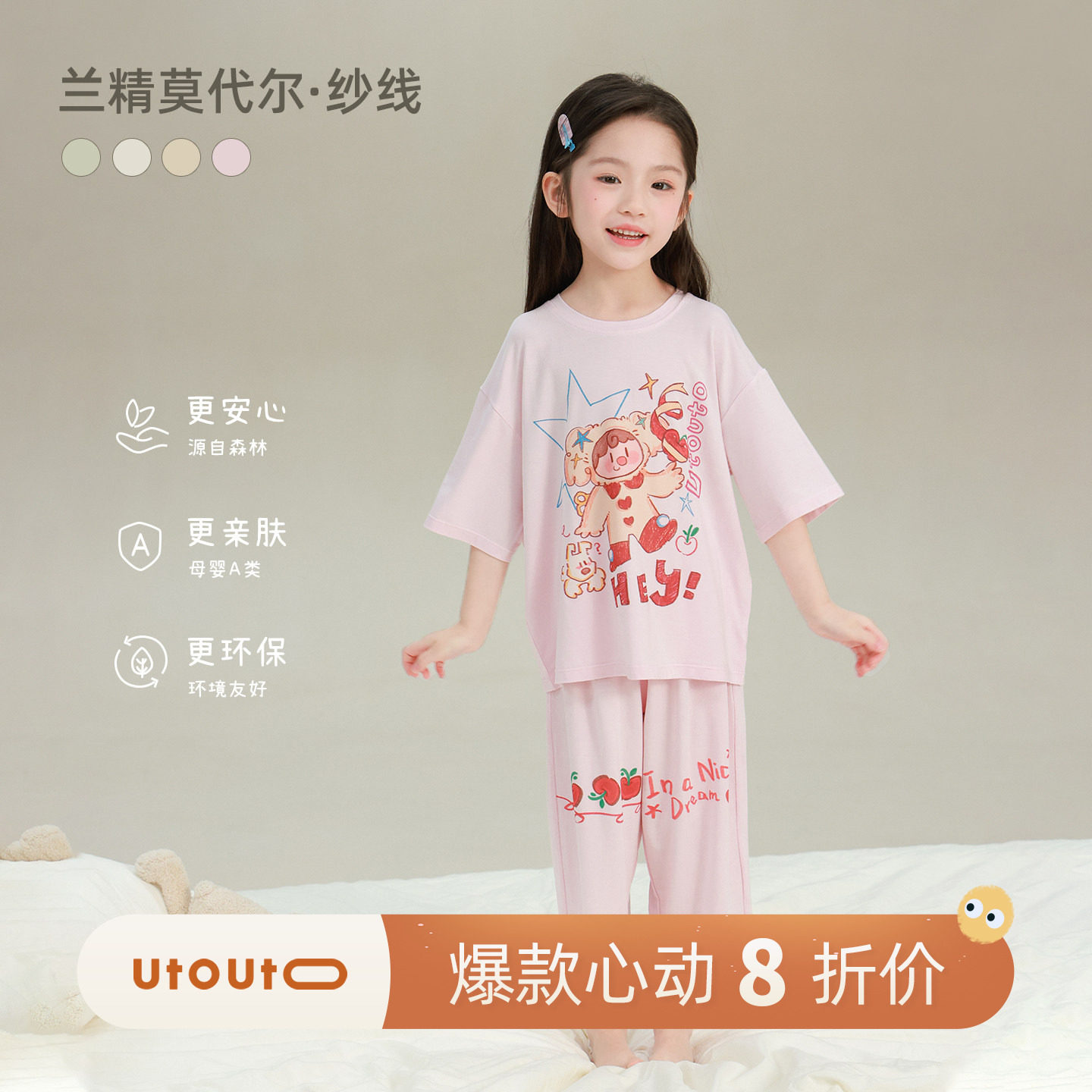 大耳象女童卡通印花家居服套装2026夏季新款宝儿莫代尔休闲睡衣薄