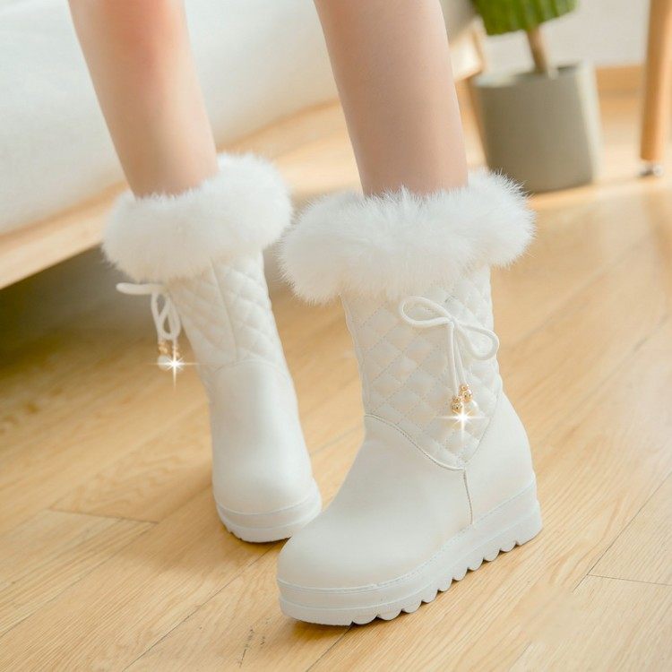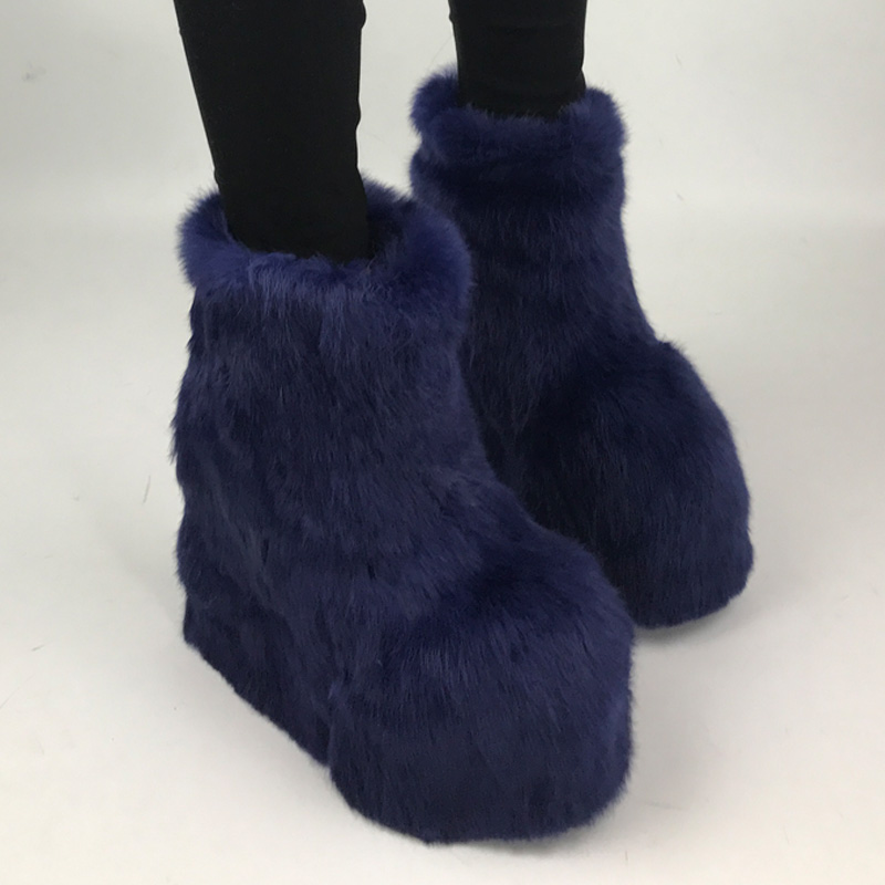 2023新款秋冬兔毛靴加绒棉靴厚底内增高坡跟短靴雪地靴大妈女靴子