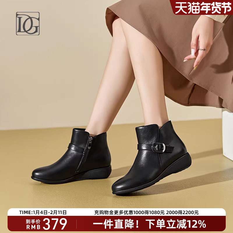 2025秋冬新款真皮羊翻皮短靴女单靴洋气低跟内增高坡跟小方头百搭