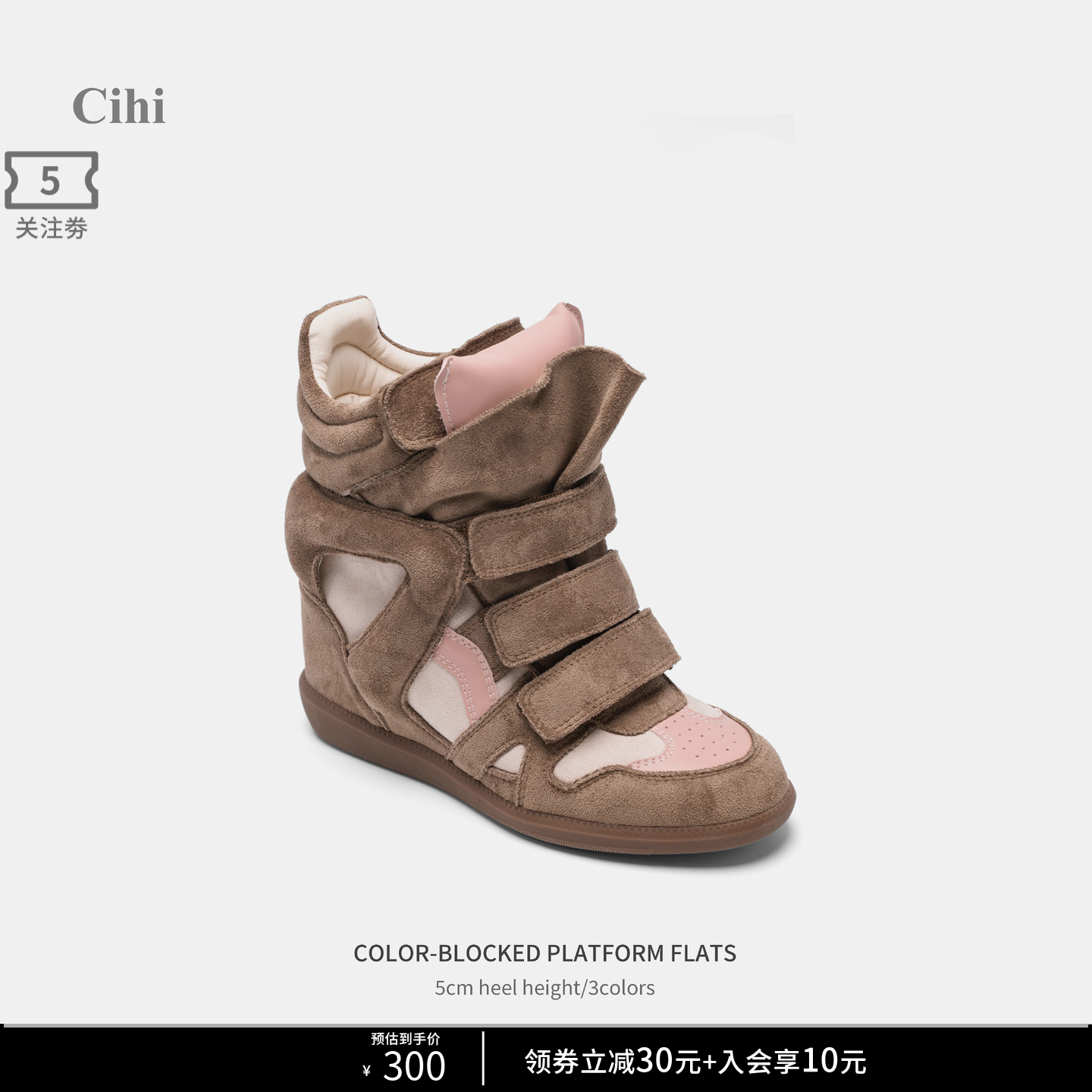 Cihi'Meraki' 经典拼色运动休闲鞋女冬季隐形内增高坡跟百搭单鞋