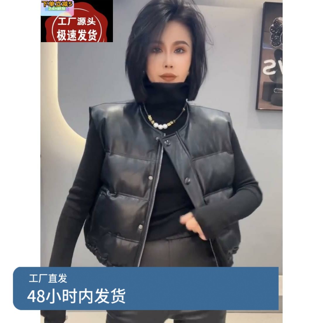 - 皮背心马甲女
