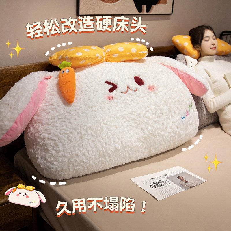 可爱毛绒靠背双人靠枕床上大抱枕床头软包兔绒造型床头靠垫可拆洗