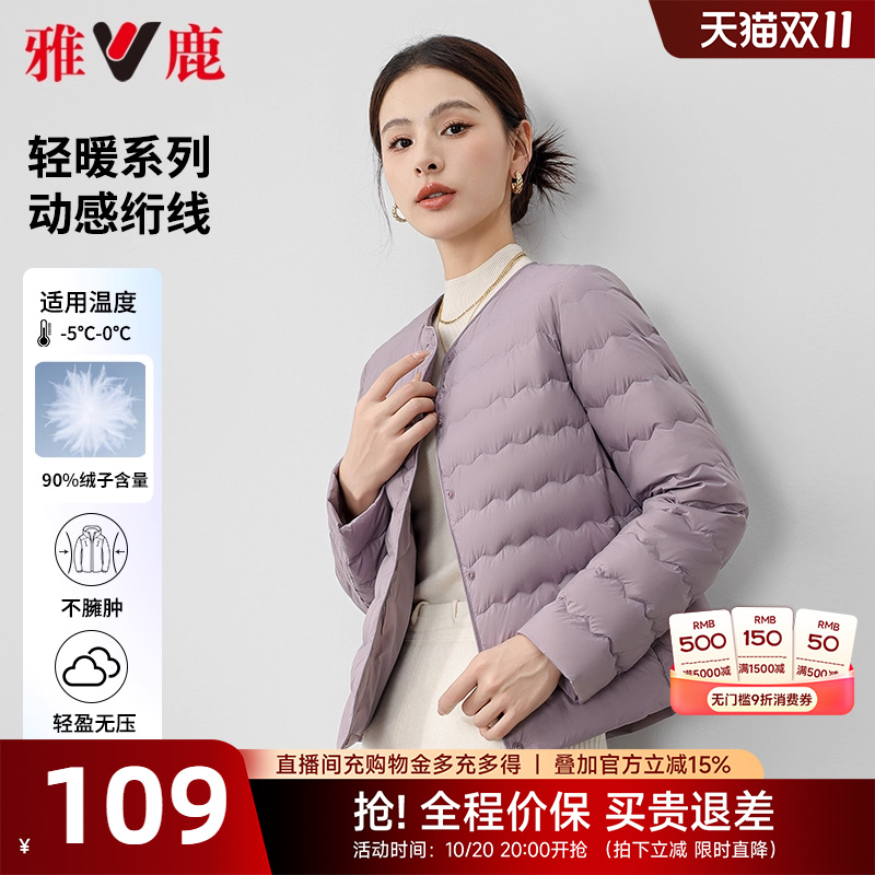 雅鹿轻薄羽绒服女款冬季2025短款立领洋气轻便保暖小个子百搭外套