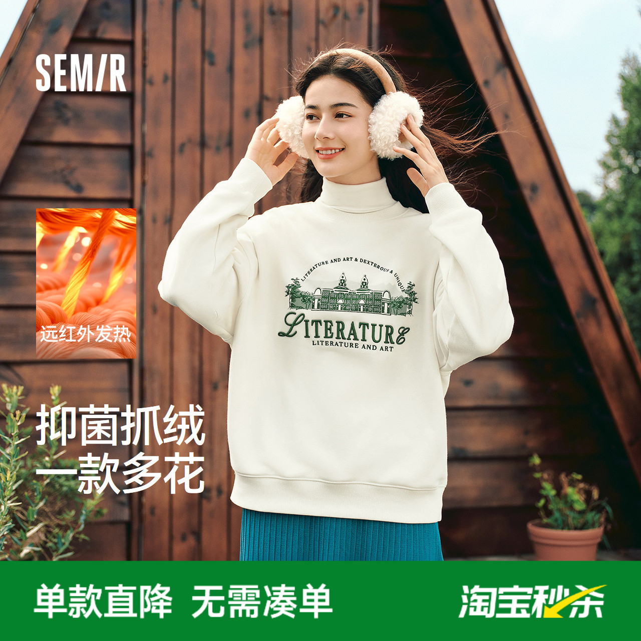 森马外套女摇粒绒落肩宽松慵懒卫衣白色冬2025新款简约连帽夹克