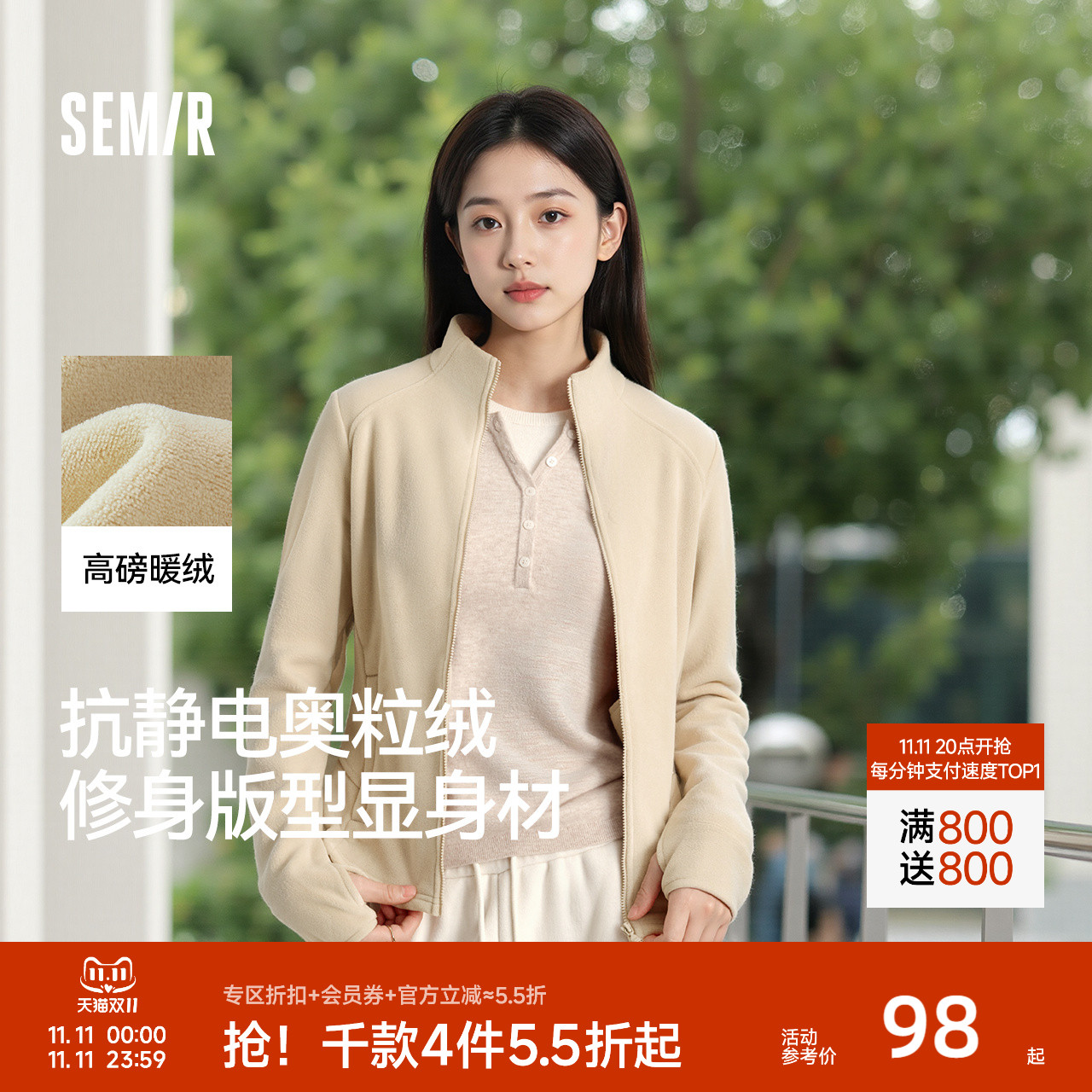森马外套女分割紧身立领夹克显瘦2025新款冬抗静电摇粒绒内搭上衣