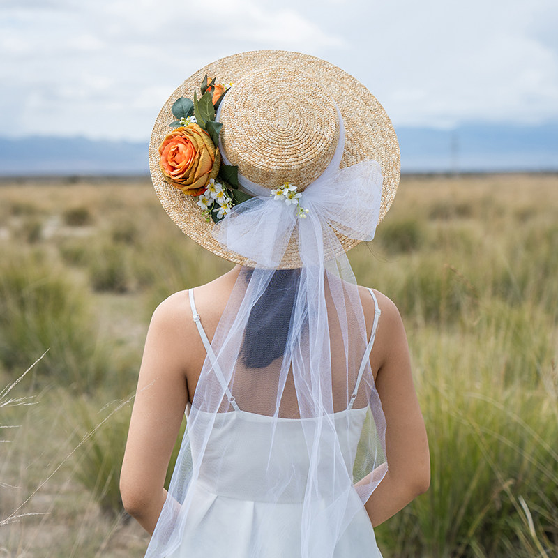 森系复古文艺新娘礼帽头饰超仙网纱帽子婚纱旅拍度假拍照写真道具