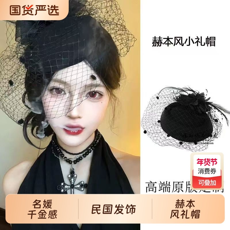法式新娘复古网纱面纱头饰民国名媛小礼帽女礼服旗袍配饰发饰黑色