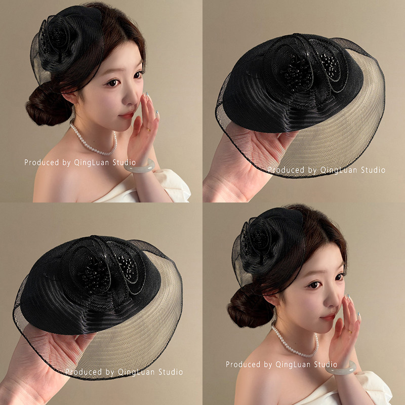新娘发饰新款法式复古网纱礼帽高级气质婚纱礼服写真造型优雅头饰
