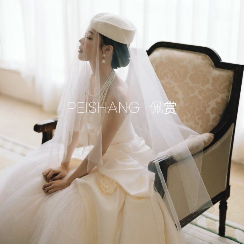 新娘头饰白色礼帽网纱遮面复古法式唯美气质优雅礼服结婚发饰帽子