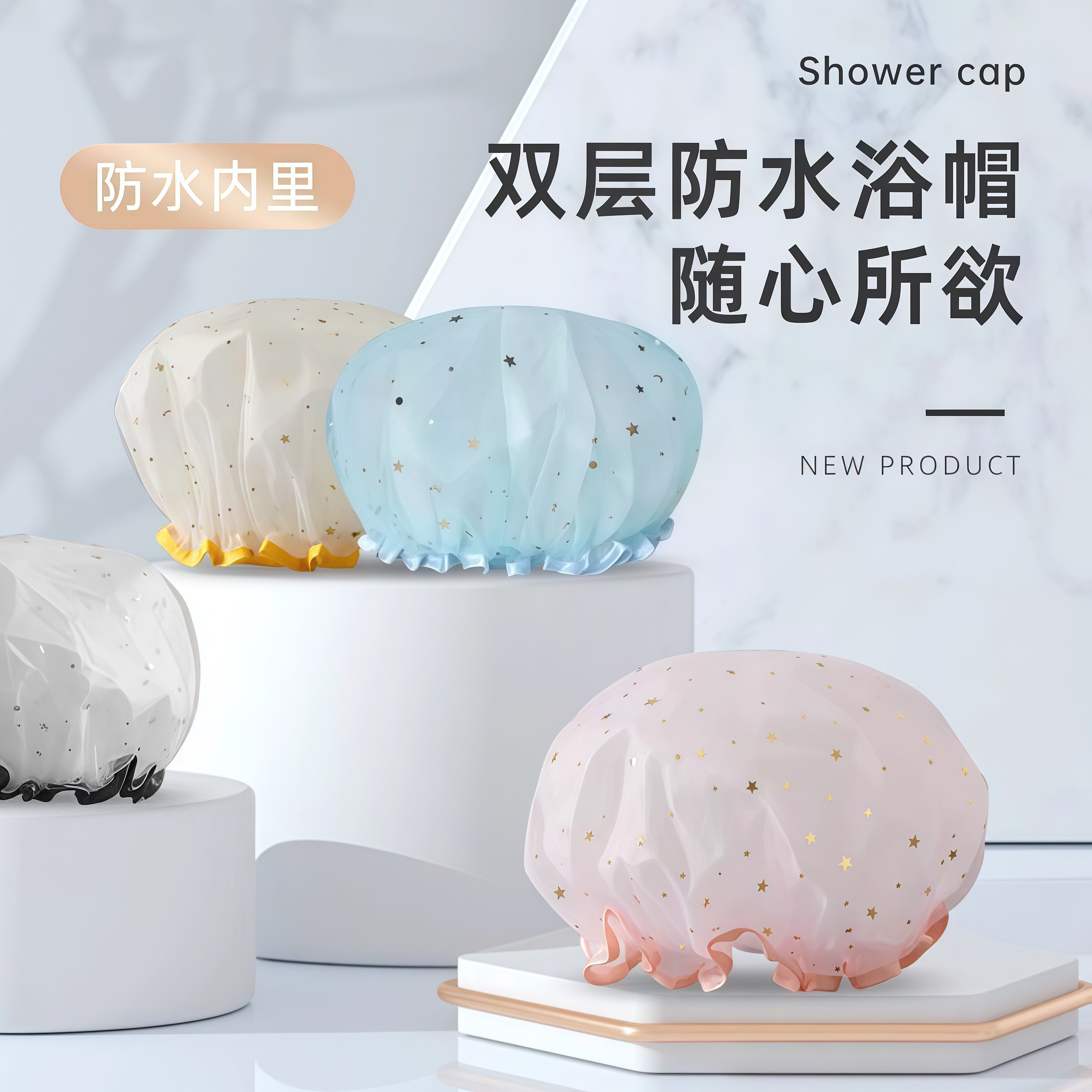 浴帽女防水淋浴经久耐用重复使用成人加厚洗头帽防油烟厨房女浴帽