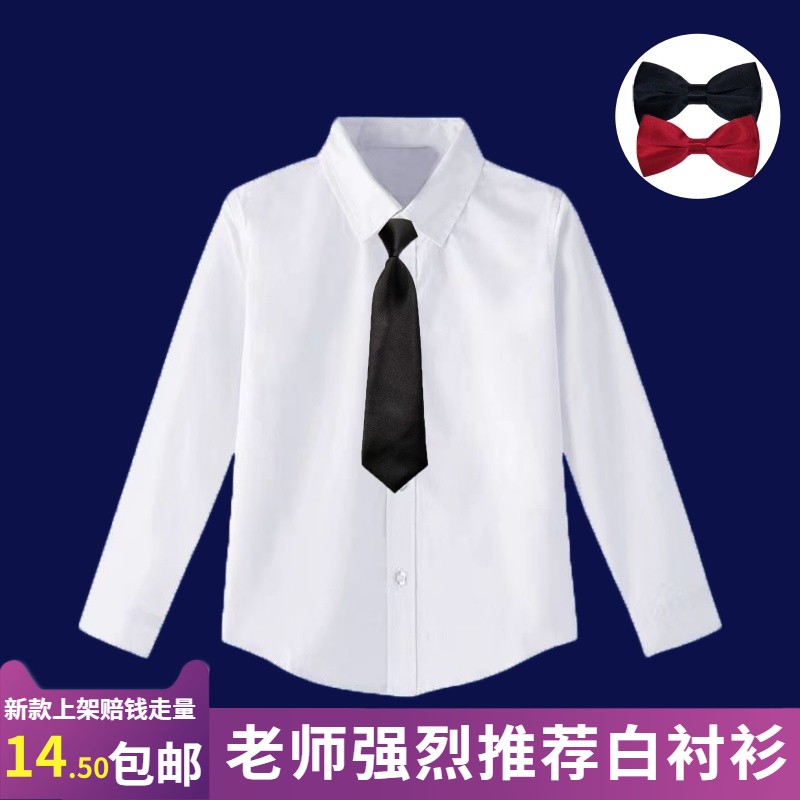 儿童白色衬衣男童小学生男孩纯棉长袖白衬衫大童校服春秋款表演出