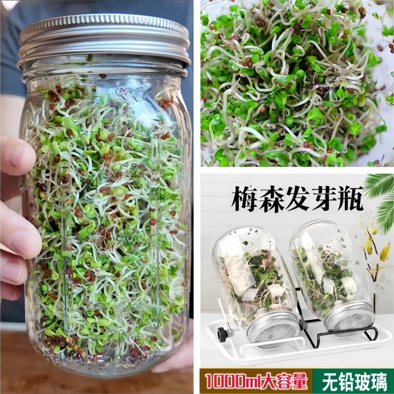 家用梅森玻璃发芽瓶西蓝花芽菜发芽罐梅森瓶种植西兰花种子水培瓶