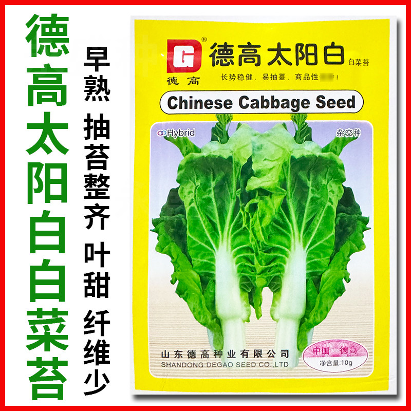 德高太阳白白菜苔种子早熟甜白菜心种籽多芽菜薹青菜籽种蔬菜种孑