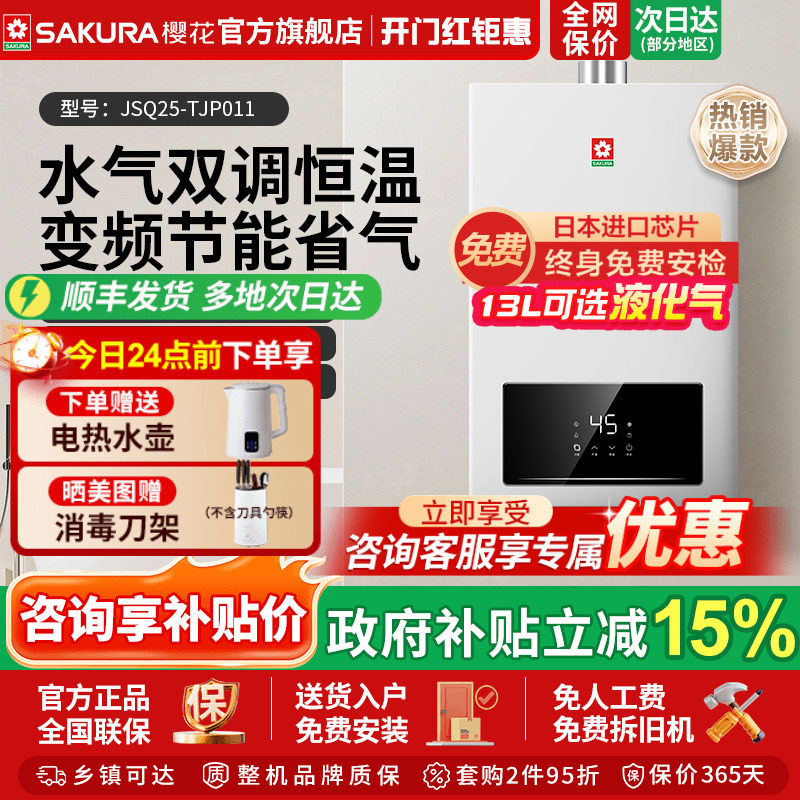 樱花官方旗舰店燃气热水器家用水气双调恒温天然气液化气13升16升