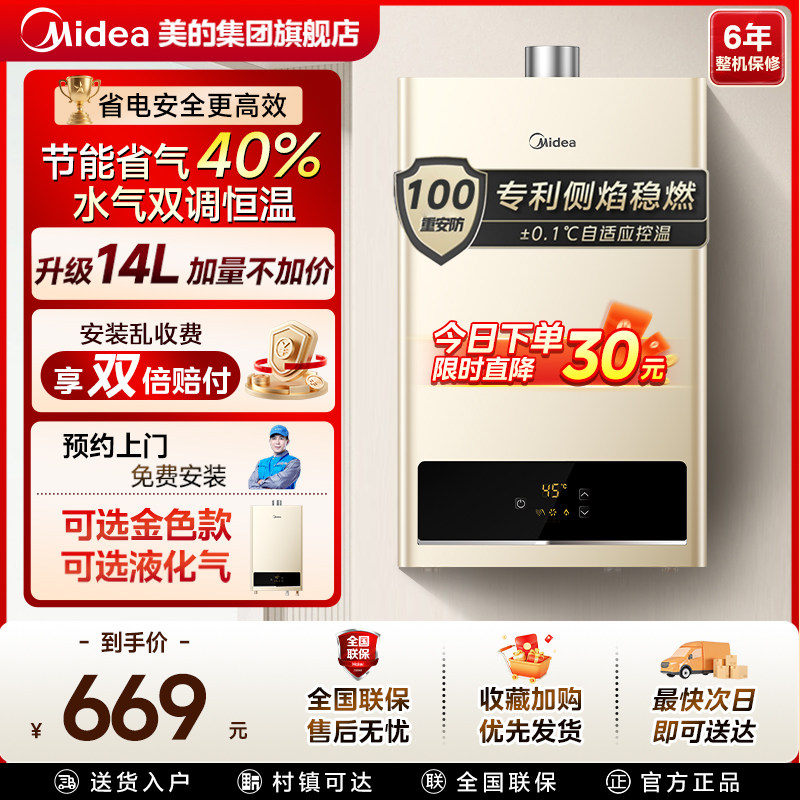 美的燃气热水器天然气节能恒温液化气煤气款家用洗澡旗舰HWFPro