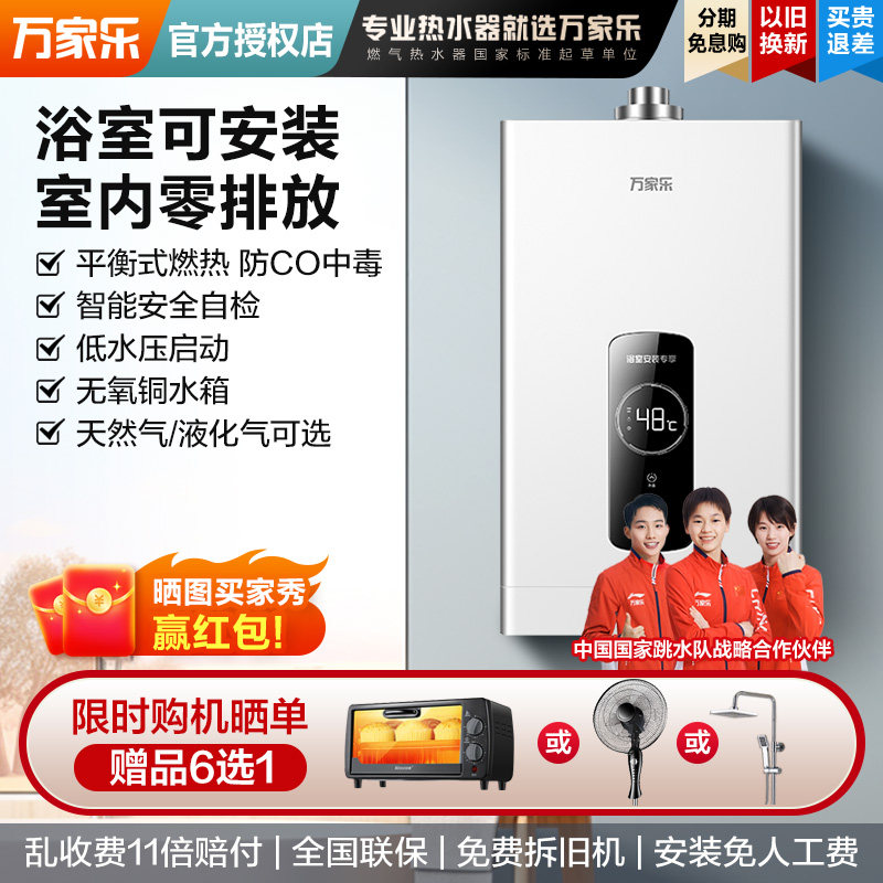 万家乐平衡式燃气热水器12升家用天然气8L液化气煤气室内浴室安装