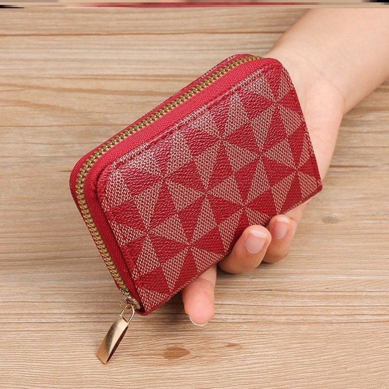 复古油蜡皮质小卡包女拉链多卡槽短款零钱包迷你百搭质感ins卡夹