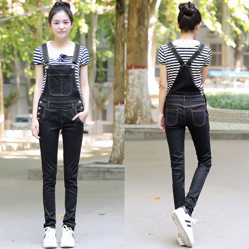 春夏新款学院风修身显瘦牛仔背带裤连身小脚裤长裤连体裤牛仔裤女