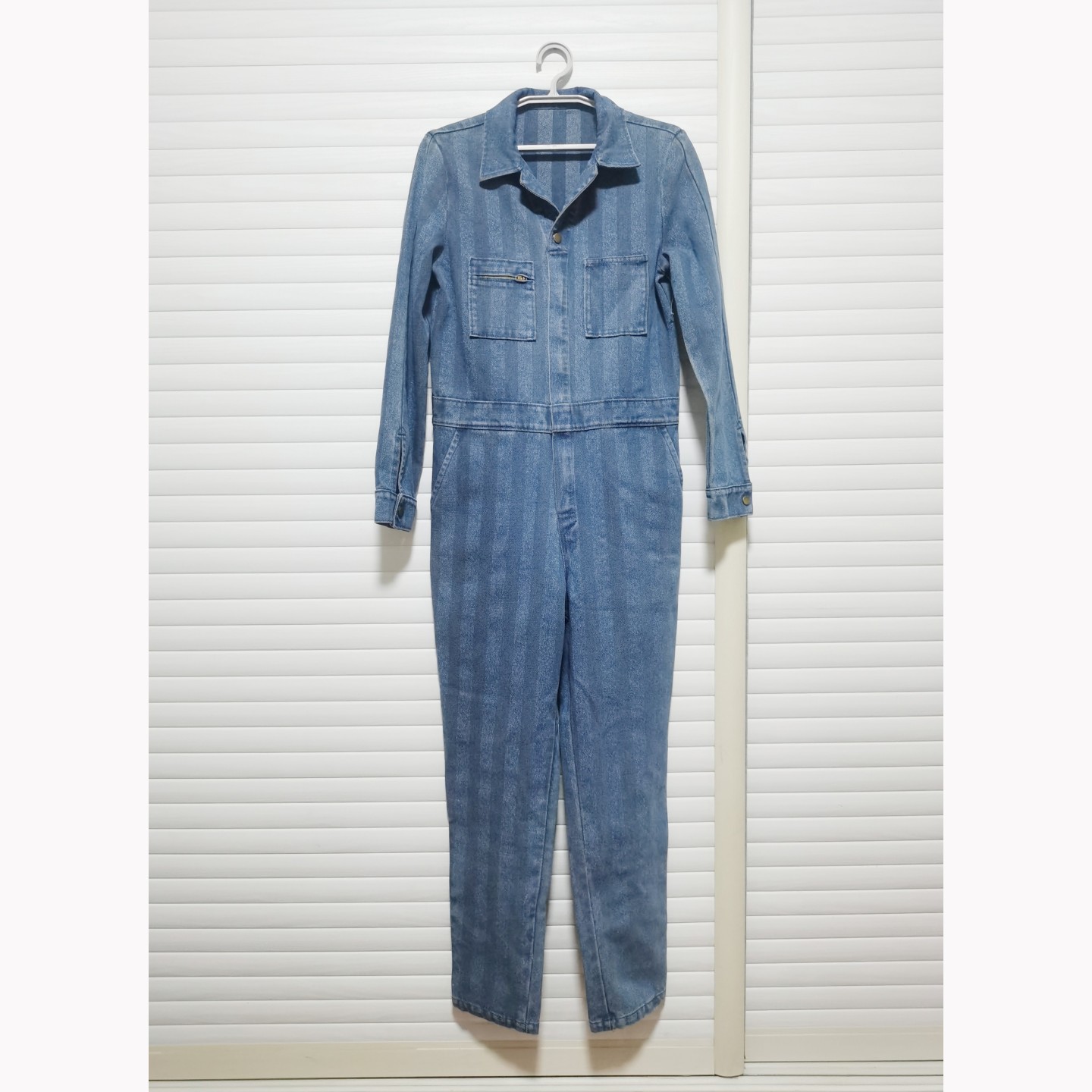 出口欧美外贸原单女长袖条纹牛仔连体裤小脚长裤高弹力超酷机车风