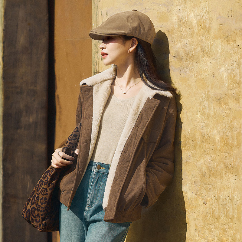 今屿花花 独特漂亮的初冬外套2025年新款灯芯绒加厚短外套小个子